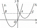 交于点A(1,3),过点A作x轴的平行线,分别交两条抛物线于点B,C.则以下结论:①无论x取何值,y2的值总是正数;②a=1;③当x=0时,y2-y1=4;④2AB=3AC;其中正确结论是 。