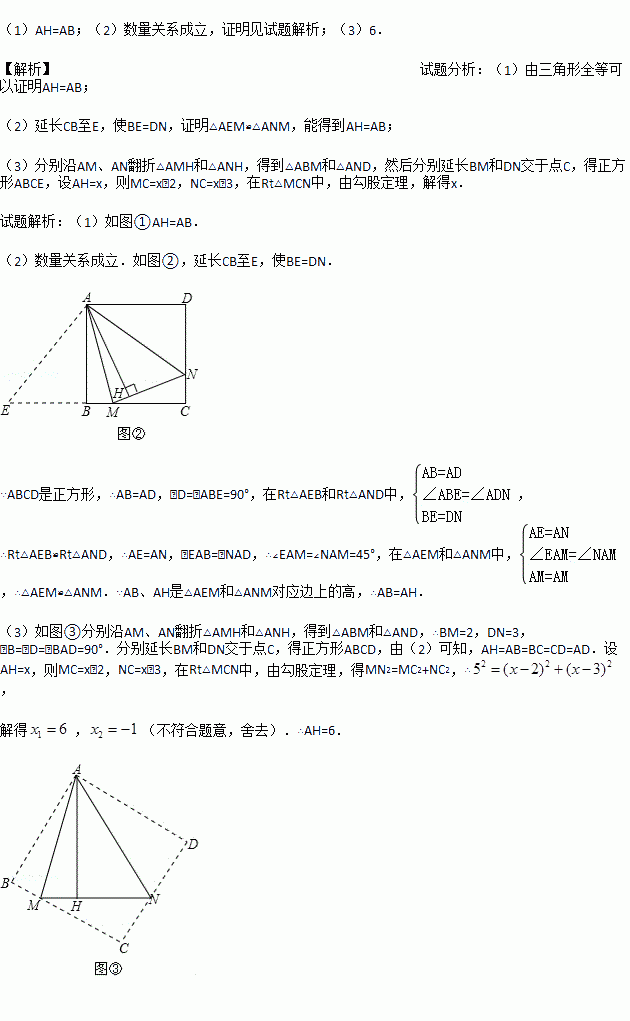 (3)如图③,已知∠MAN=45°,AH⊥MN于点H,且MH=2,NH=3,求AH的长.(可利用(2)得到的结论)
