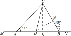 ∵AB=AE+BE=10(1+$\sqrt{3}$),即$\sqrt{3}$BE+BE=10(1+$\sqrt{3}$),