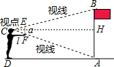 分析 作CH⊥AB于H,交EF于P,如图,则CH=DA=40m,CP=40cm=0.4m,EF=20cm=0.2m,证明△CEF∽△CBA,然后利用相似比计算出AB即可.