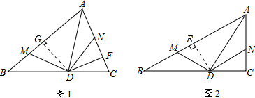 分析 (1)过点D作DG⊥AB于G,证明Rt△DFN≌Rt△DGM,得MG=NF,AG=AF,再把AM+AN变形即可得出等于2AF;