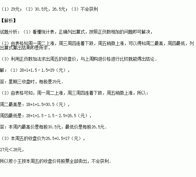 (1)星期三收盘时,每股是多少元?
