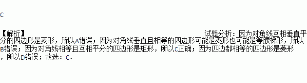 C. 对角线垂直相等的四边形是菱形 D. 四边都相等的四边形是正方形