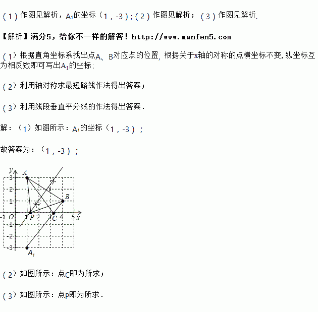(3)用尺规在x轴上找一点P,使PA=PB(保留作图痕迹).