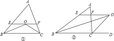如图①,△ABC中,∠B、∠C的平分线交于O点,过O点作EF∥BC交AB、AC于E、F.