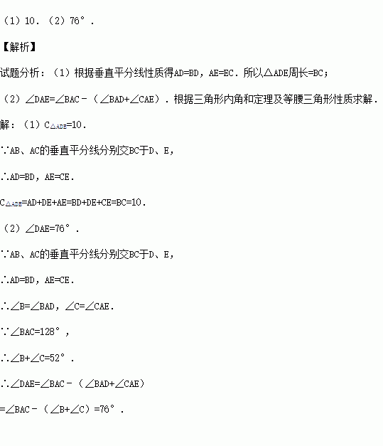 (1)若BC=10,则△ADE周长是多少?为什么?