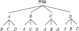 解答 解:(1)画树状图得:![]()