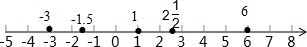 把下面的直线补充成一条数轴,然后在数轴上标出下列各数:-3,+l,-l.5,6,2