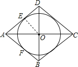 分析 (1)由AB、AD分别相切于点E、F,得到∠EAO=∠FAO,于是得到OD=OB,根据AO=OC,推出四边形ABCD是平行四边形,于是得到结论;