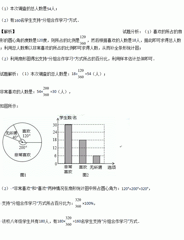 (2)若该校八年级学生共有540人,请你估计该校八年级有多少名学生支持“分组合作学习”方式(含“非常喜欢”和“喜欢”两种情况的学生)?