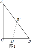解答:解:当点B的对应点落在AB上时,如图1,则DB′=DB,
