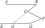 分析 延长BC交DE于点G,由平行线的性质可得∠B=∠BGD,在四边形CGDF中,由内角和为360°,可找到∠B、∠C、∠D、∠F的关系.