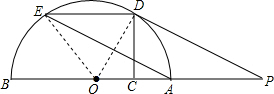 分析 (1)根据CO与DO的数量关系,即可得出∠CDO的度数,进而求出∠AOD=60°,∠BOD=120°,∠AED=30°,点E是$\widehat{BD}$的中点,进而求出∠EAB=30°,即∠BAE=∠AED,得出ED∥AP,即可证得结论;