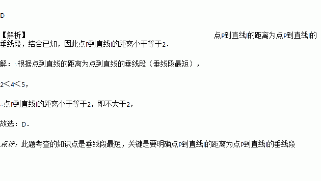 点P为直线m外一点,点A,B,C为直线m上三点,PA=4cm,PB=5cm,PC=2cm,则点P到 直线m的距离为( )