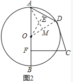 (2)连接OD,作OE⊥AD,AM⊥OD,垂足分别为E、M;如图2所示: