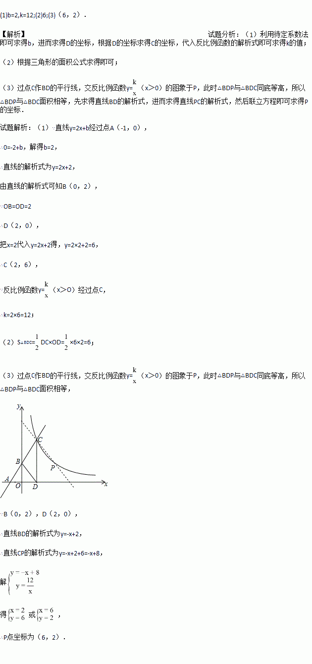 (x>0)的图象上找一点P(异于点C),使△BDP与△BDC的面积相等,求出P点坐标.
