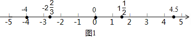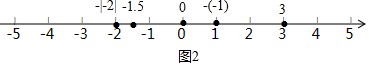 解答 解:(1)将各数标记在数轴上,如图1所示.观察数轴即可得出:-4<-2$\frac{2}{3}$<0<1$\frac{1}{2}$<4.5.(2)将各数标记在数轴上,如图2所示.观察数轴即可得出:-|-2|<-1.5<0<-(-1)<3.
