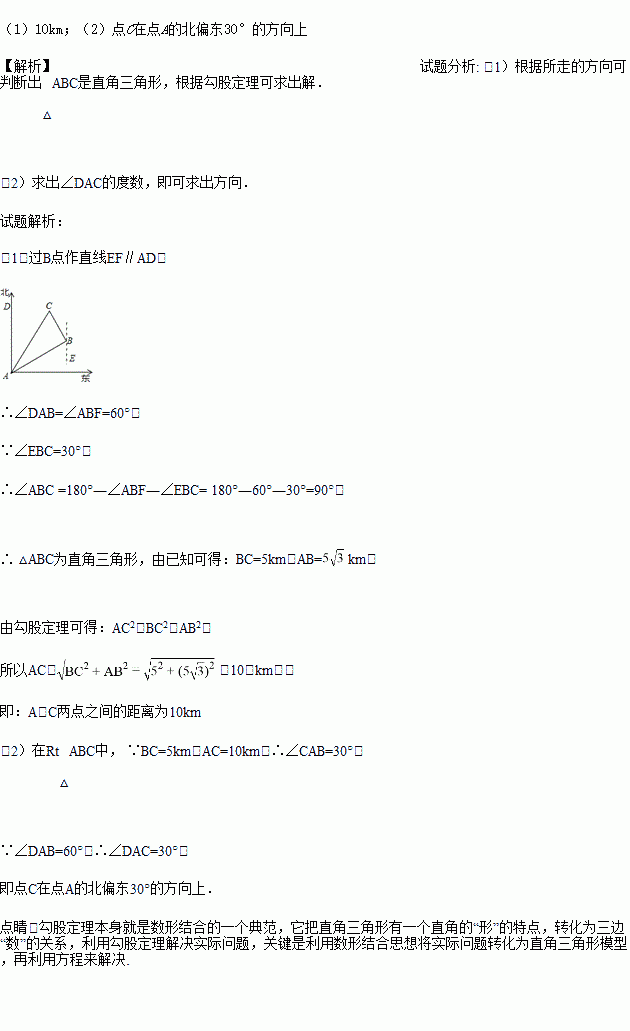 km到达B点,然后再沿北偏西30°方向走了5km到达目的地C点.