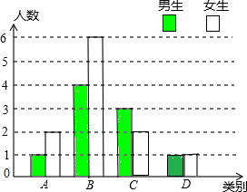则D类男生的人数是2-1=1(人).