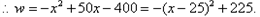 ∴ 当每件产品的销售价定为 25 元时. 每日销售利润最大. 最大利润是225元.