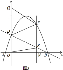 ②如图3,当DE=DF时,连结DQ,交EF于点M,若D、E、F、Q为顶点作菱形,![]()