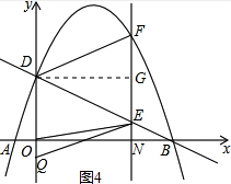 ①当DE=DF时,连结DQ,交EF于点M,若D、E、F、Q为顶点作菱形则EM=FM,再根据EM=$\frac{1}{2}$t,FM=-t2+$\frac{7}{2}$t得出$\frac{1}{2}$t=-t2+$\frac{7}{2}$t,求出t后,再求出EN即可得出点E的坐标;