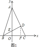 分析 (1)首先在直角△ABO中利用勾股定理求得AB的长,然后根据△ABO是等腰直角三角形求得AD和BD的长,作DF⊥BC于F,根据△BOE∽△BDF求得DF和OF的长,则D的坐标即可求得;