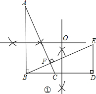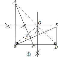 (2)分别作对应点B、D连线的中垂线、A、B连线的垂直平分线,两线的交点即为旋转中心O.![]()