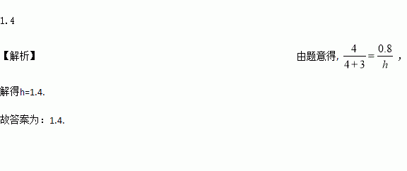 如图,网高为0.8米,击球点到网的水平距离为3米,小明在打网球时,要使球恰好能过网,且落点恰好在离网4米的位置上,则球拍击球的高度h为__________米。