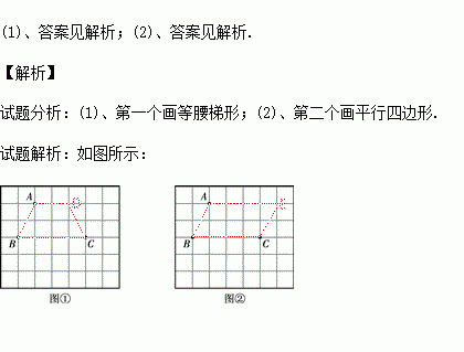 (1)在图①中确定格点D,并画出以A、B、C、D为顶点的四边形, 使其为轴对称图形.(画一个即可)