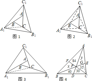 £¨3£©Èçͼ4£¬PΪ¡÷ABCÄÚÒ»µã£¬Á¬½ÓAP¡¢BP¡¢CP²¢ÑÓ³¤·Ö±ð½»±ßBC¡¢AC¡¢ABÓÚµãD¡¢E¡¢F£¬Ôò°Ñ¡÷ABC·Ö³ÉÁù¸öСÈý½ÇÐΣ¬ÆäÖÐËĸöСÈý½ÇÐÎÃæ»ýÒÑÔÚͼÉϱêÃ÷£¬Éè¡÷APEµÄÃæ»ýΪy£¬¡÷BPFµÄÃæ»ýΪx£¬¢ÙÇó¡÷APE£¬¡÷BPF£¬¡÷APFÃæ»ýÖ®¼äµÄ¹ØÏµ£»¢ÚÇó¡÷ABCµÄÃæ»ý£®