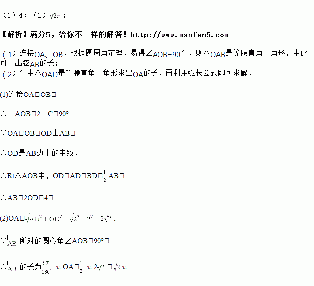 如图,在半径AC为2,圆心角为90°的扇形内,以BC为直径作半圆,交弦AB于点D,连接CD,则图中阴影部分的面积是 .