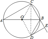 分析 (1)连接OD,DC,CO,首先证明AC∥DE可得∠ECD=∠ODC,根据直角三角形两锐角互余可得∠CDE+∠DCE=90°,利用等量代换可得∠ODC+∠CDE=90°,进而可得DE为⊙O的切线;