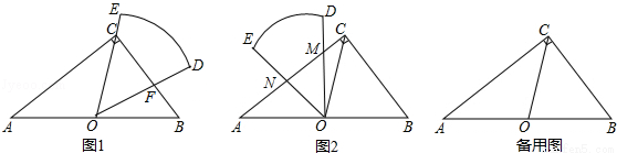 (2)将扇形纸片DOE绕点O逆时针旋转,OD,OE与边AC分别交于点M,N(如图2),当CM的长是多少时,△OMN与△BCO相似?