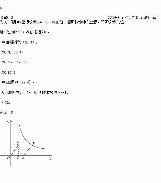 (x>0)的图象经过顶点B,则k的值为( )