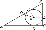 分析 过点P作PD⊥AC,PE⊥BC,PF⊥AB,由点P是内切圆的圆心可知PD=PE=PF,再由切线长定理可知CD=CE,BE=BF,故可得出四边形PDCE是正方形,再由勾股定理求出AB的长,故可得出PD的长,由BE=BC-CE可得出BE的长,根据点O为直角三角形的外心可得出OB的长,进而得出OF的长,根据勾股定理即可得出结论.