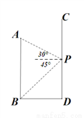 如图,AB、CD分别表示两幢相距36米的大楼,小明同学站在CD大楼的P处窗口观察AB大楼的底部B点的俯角为45°,观察AB大楼的顶部A点的仰角为30°.