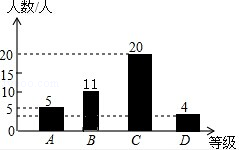 (2)D等级人数:40×10%=4(人)