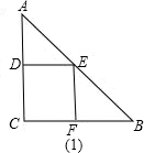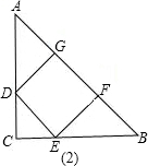 解:如图(1),当正方形的一边在三角形的直角边上时,设正方形的边长为x,