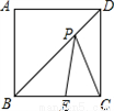 在正方形ABCD中,E在BC上,BE=2,CE=1,P在BD上,则PE和PC的长度之和最小可达到______