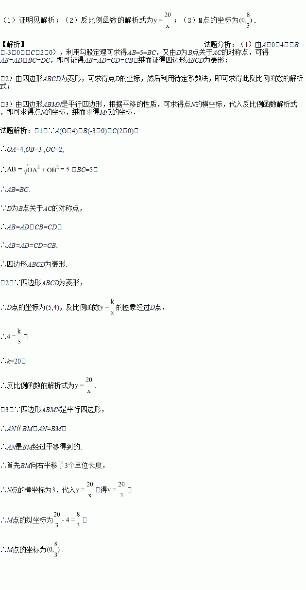 的图象(x>0)上一点N,y轴正半轴上一点M,且四边形ABMN是平行四边形,求M点的坐标.