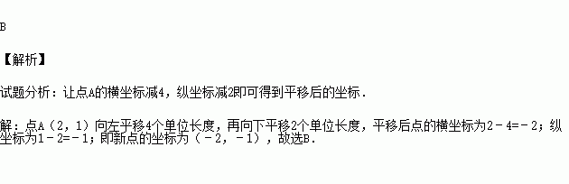 (2009秋•滨海县期末)在直角坐标系中,点A(2,1)向左平移4个单位长度,再向下平移2个单位长度后的坐标为( )