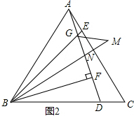 分析 (1)易证△ABE≌△ACD,得到∠ABE=∠CAD,AD=BG,根据等量代换得到∠BGF=60°,∠GBF=30°,所以BG=2GF,所以AD=BE=BG+GE=2GF+GE;