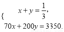 小明早上骑自行车上学,中途因道路施工步行一段路,到学校共用20分钟,他骑自行车的平均速度是200米/分钟,步行的速度是70米/分钟,他家离学校的距离是3350米.设他骑自行车和步行的时间分别为x、y分钟,则列出的二元一次方程组是( ).