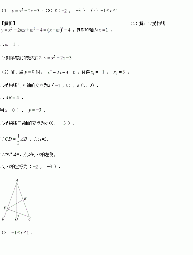(3)在(2)的条件下,将抛物线在直线x=t右侧的部分沿直线x=t翻折后的图形记为G,若图形G与线段CD有公共点,请直接写出t的取值范围.