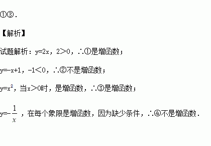 定义:给定关于x的函数y,对于该函数图象上任意两点(x1,y1),(x2,y2),当x1<x2时,都有y1<y2,称该函数为增函数,根据以上定义,可以判断下面所给的函数中,是增函数的有 (填上所有正确答案的序号)