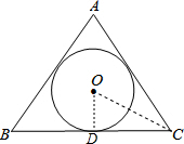 分析:利用等边三角形以及其内切圆的性质以及锐角三角函数关系得出DO,DC的长,进而得出△ABC的高,再利用圆以及三角形面积公式求出即可.