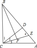 分析 先利用等角的余角相等得到∠1=∠A,再利用角平分线定义得到∠2=∠3,则利用三角形外角性质得∠4=∠3+∠A=∠2+∠1,即∠4=∠BCE,于是可判断BC=BE,然后根据等腰三角形的性质易得EF=CF.