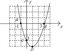 解答 解:(1)∵二次函数y=x2-2x-3可化为y=(x+1)(x-3),A在B的左侧,![]()