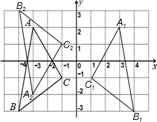 1;利用轴对称性质,作出A、B、C关于y轴的对称点,顺次连接各点,即得到关于x轴对称的△A